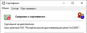 a) «Сертификат недействителен. Срок действия какого – то (указано) СОС истек. СОС действителен по ДД.ММ.ГГГГ-ЧЧ.ММ»: