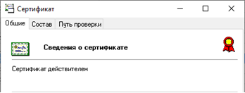5) открыть его для просмотра двойным щелчком мыши (или нажать правой кнопкой мыши – «Просмотр»). В открывшемся окне «Сведения о сертификате» должна быть запись: «Сертификат действителен»: