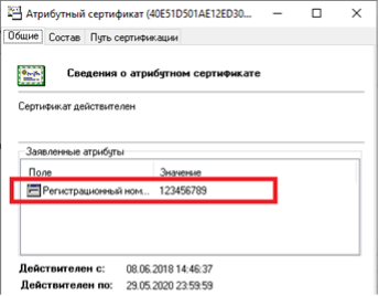 7) открыть его для просмотра (правая кнопка мыши – «Просмотр»). В открывшемся окне «Сведения об атрибутном сертификате» должна быть запись «Сертификат действителен». Также нужно удостовериться, что в атрибуте Регистрационный номер указан именно ваш номер УНПФ, который был присвоен вам в ФСЗН: