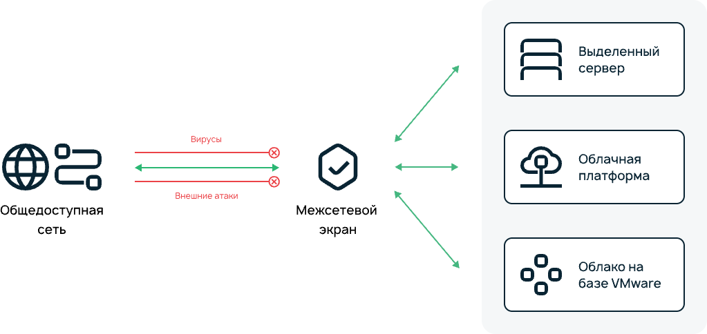 Предотвращает несанкционированный доступ, хакерские атаки и проникновение вредоносного трафика во внутреннюю сеть компании.